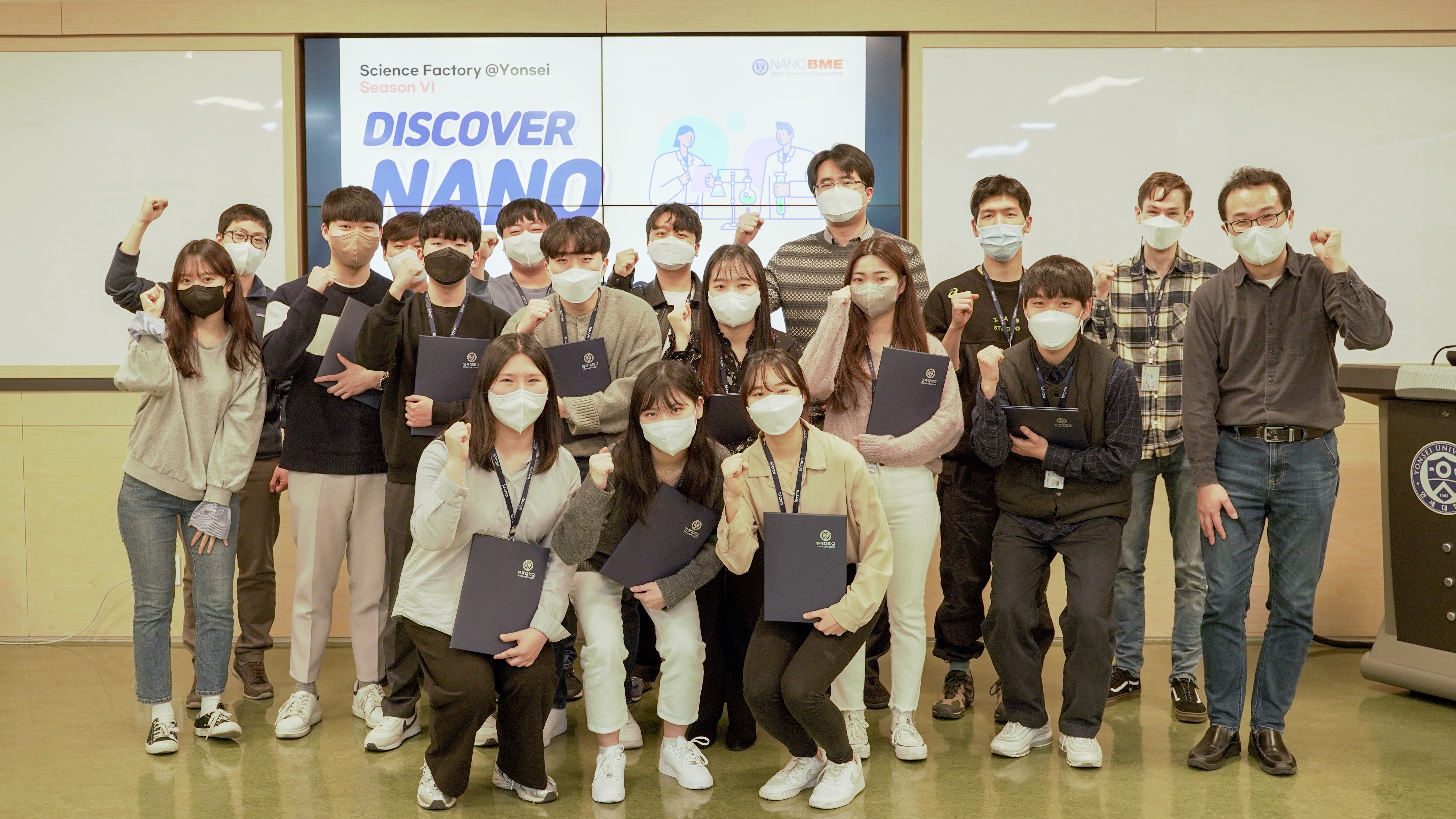 2022년 1월 3일부터 2월 25일까지 "Discover Nano"라는 주제로 진행된 Science Factory @Yonsei Season 6가 성황리에 마무리되었다. 이번 프로그램은 Quantum Dots Nanoscience, Nano-Neuroscience, Nanoparticle & Gene Delivery 3개의 팀에서 총 9명의 학생이 참가하였고, 학생들은 약 두 달 동안 팀 별로 연구 및 실험을 수행하며 1월 28일 중간 발표를 거쳐, 2월 25일 최종 포스터 발표를 진행하였다. 포스터 발표가 마무리된 후, 연구 성과를 토대로 진행한 수료식 및 시상식에서 Quantum Dots Nanoscience 팀이 우수한 성적으로 금상을 수상하였다.