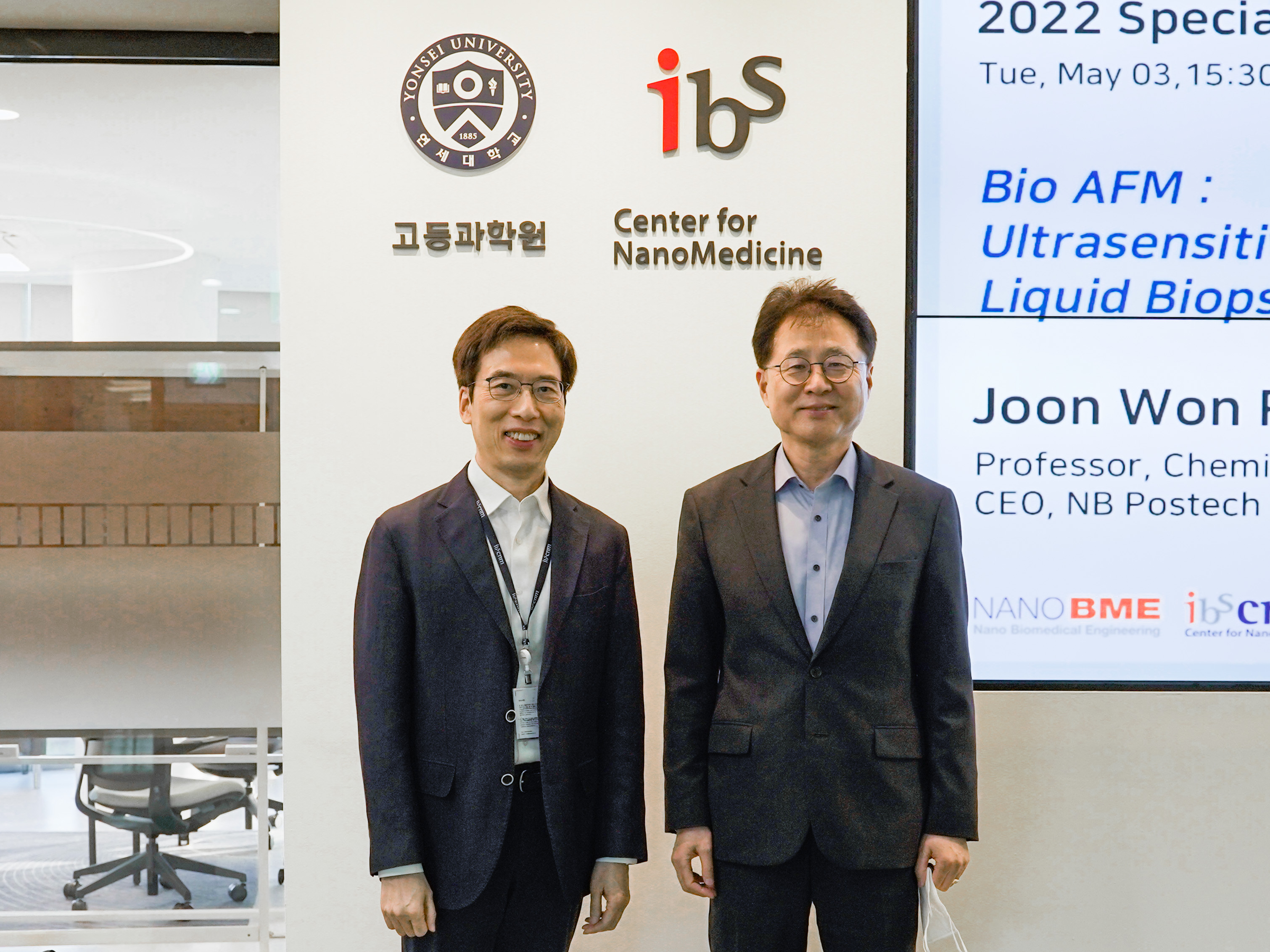 포항공과대학교(Postech) 화학과 특임교수이자, 엔비 포스텍의 대표이사로 재직 중인 박준원 교수의 Special Seminar가 "Bio AFM : Ultrasensitive Tool for Liquid Biopsy and Bioanalysis" 라는 주제로 5월 3일 화요일 오후 3시 30분에 개최되었다.