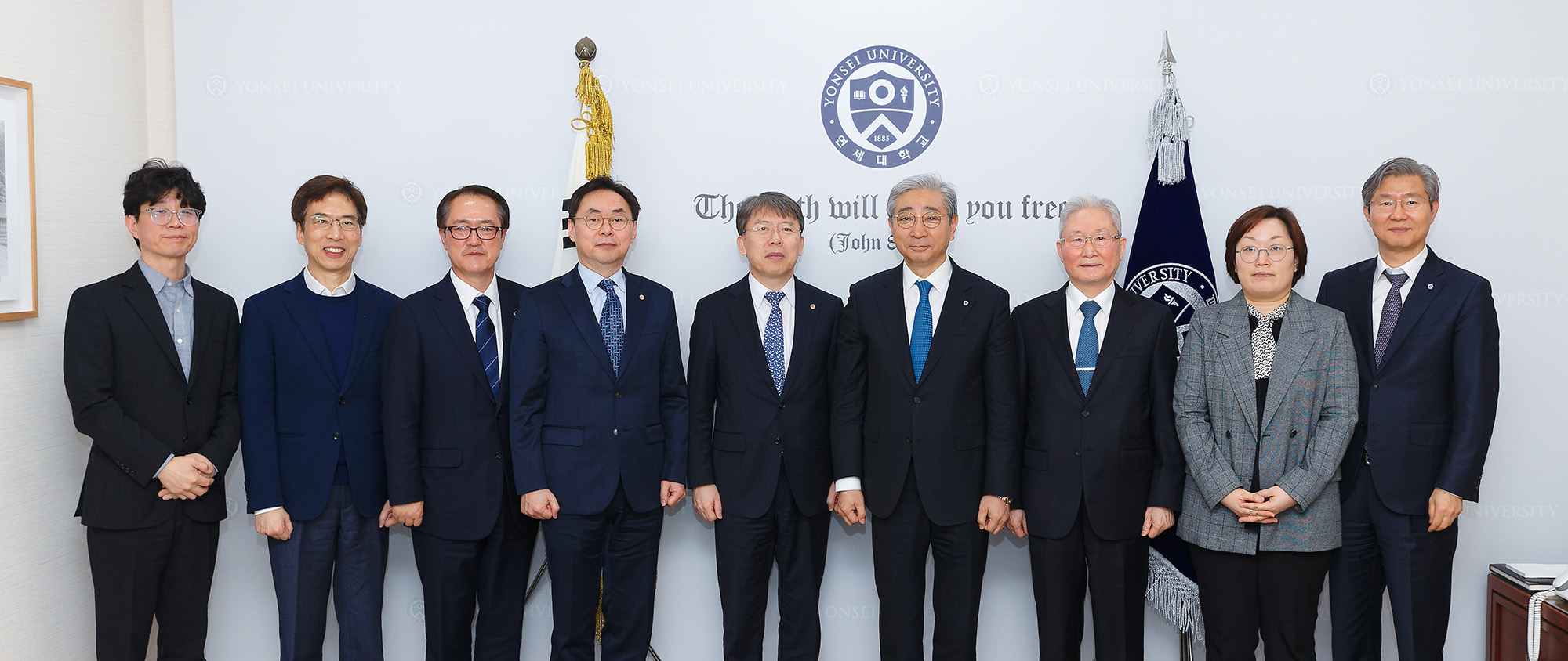 연세대학교와 기초과학연구원(IBS)의 기관장 간담회가 지난 3월 28일 목요일 알렌관에서 개최되었다. 세계적 수준의 기초과학을 창출하고, 글로벌 연구 허브로의 도약을 위해 IBS와의 협력증진 방안을 모색하는 자리로 마련된 이번 간담회에는 연세대학교 윤도섭 총장, IBS 나노의학연구단 천진우 단장, IBS 노도영 원장과 하성도 부원장 등 관련 인사들이 참석했다.
