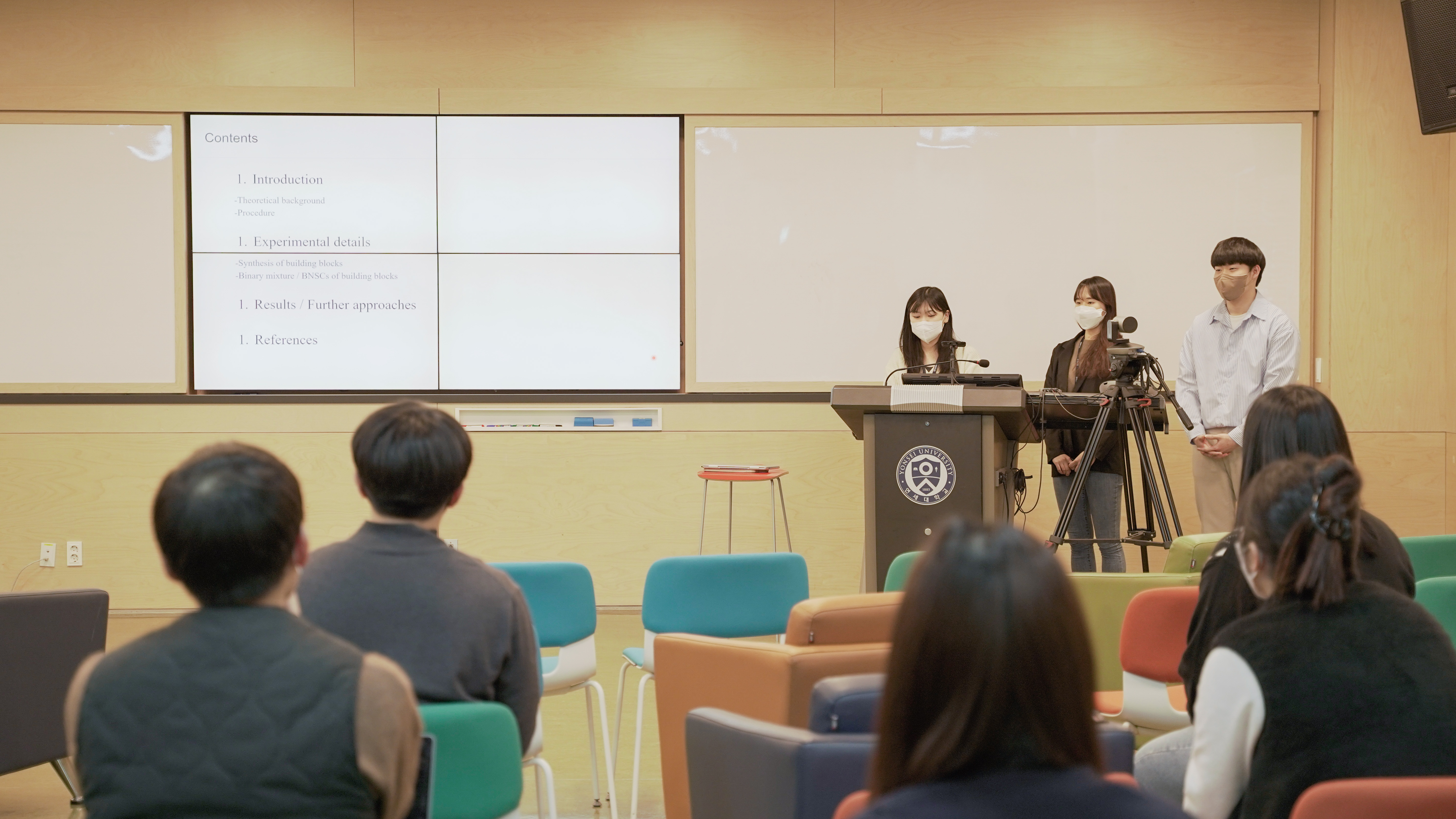 ![]() ![]() 지난 1월 28일 금요일 오후 2시 30분, Science Factory @Yonsei 시즌 6 참가 학생들의 중간 발표가 IBS관 오디토리움에서 진행되었다. 약 한 달 동안 담당 교수님과 시니어 멘토들의 지도 하에 연구 주제를 선정하고, 기초 연구를 진행하며 쌓은 경험들을 토대로 발표 및 질의응답 시간을 가졌다. 한편, 고등과학원은 연세대학교 학부생에게 창의적 융합연구교육 경험을 제공하고자 선진국형 프로그램의 일환으로 2019년부터 Science Factory 인턴십 프로그램을 진행해오고 있다. 이는 미래 과학의 실습과 도전을 IBS관의 첨단 시설과 장비를 통해 체험하는 학부생 대상 교육 프로그램으로, 다가오는 2월 25일 금요일에는 시즌 6 참가 학생들의 포스터 발표 및 수료식이 진행될 예정이다.