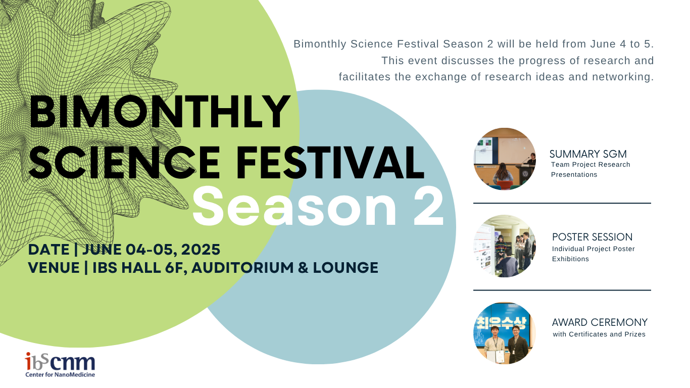 6월 첫째 주, 대통령 선거와 현충일 등으로 유난히 바쁜 한 주였던 가운데, 'Bimonthly Science Festival Season 2'를 성황리에 개최하였다. 6월 4일(수)부터 5일(목)까지 양일간 진행된 이번 행사는 오전 포스터 세션을 통해 연구 성과를 공유하고, 오후에는 Summary SGM을 통해 상반기 연구를 함께 정리하는 뜻깊은 시간을 가졌다. 바쁜 일정 속에서도 전 구성원이 적극적으로 참여하며, 과학에 대한 열정과 협력의 가치를 다시 한 번 확인할 수 있었다.