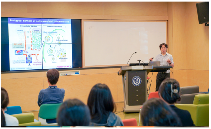 6월 10일(화)에는 김원종 교수가 ‘Delivery of Drug, Gene, and Nitric Oxide for the Treatment of Various Diseases’ 라는 주제로 진행하였으며, 6월 12일(목)에는 곽지현 교수가 ‘From Spikes to Space: Neuronal Representation of Geometric Space’ 를 주제로 세미나를 진행하였다.