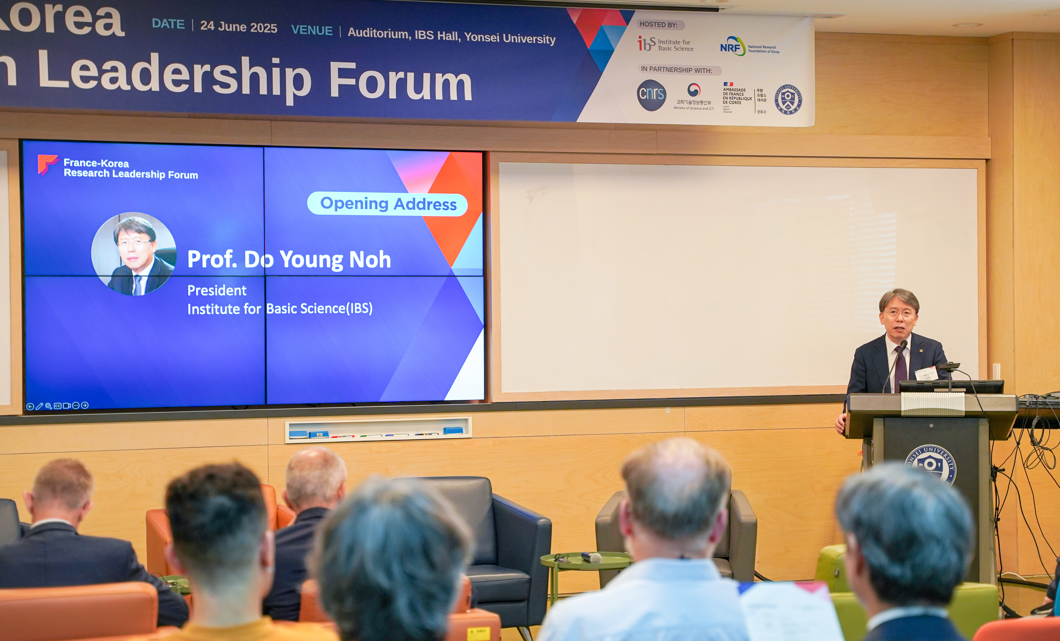 2025년 6월 24일(화), 연세대학교 IBS 홀에서 2025 France–Korea Research Leadership Forum이 성황리에 개최되었다. 이번 포럼은 IBS와 NRF가 공동 주관하고 과학기술정보통신부, CNRS, 주한 프랑스대사관 등 다수 기관이 후원했으며, 국내외 학계 및 연구기관, 글로벌 협력 단체들이 한자리에 모여 한-불 과학 협력의 현주소와 미래 전략을 논의하는 뜻깊은 자리였다.